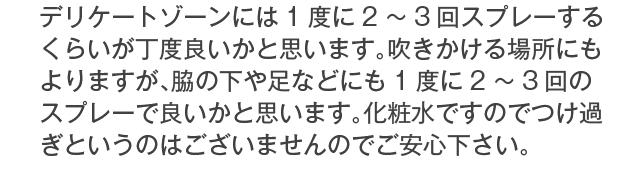 私が購入したスプレーを何気なく彼氏にも勧めることで、彼氏には臭いと言わずに自然に使用してもらえるようになりました。彼氏自信も実は気にしていたようで、二人で惜しみなく使用するようになりました!