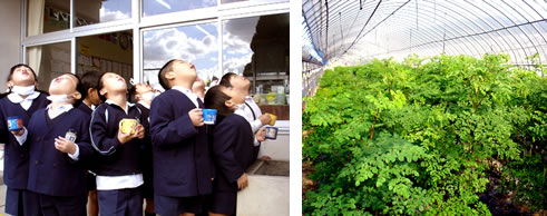 熊本県上天草市立上小学校ではインフルエンザ予防と感染性胃腸炎対策として11月〜2月の間、毎日モリンガ茶によるうがいと積極的飲用が行われています。